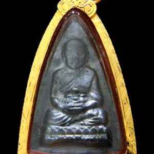 พระกลีบบัวรุ่น 1 หลวงปู่ทวด วัดช้างให้ จ.ปัตตานี เนื้อตะกั่ว ปี 2511 เลี่ยมทองยกซุ้มสิงห์อย่างสวย มีขนาดสูง 3.2 x 2.1 ซ.ม. (วัดรวมกรอบทองคำที่เลี่ยมแล้ว) มาพร้อมบัตรรับรองพระเครื่อง เพื่อยืนยันความแท้ และไม่มีหักซ่อมใดๆ ซึ่งเป็นไปตามมาตรฐานของร้าน นิว พระเครื่องคือนอกจะแท้แล้ว ยังต้องสวยสมบูรณ์หมดจรดอีกด้วย (ที่สำคัญรุ่นนี้มีเก๊ออกมาแล้วเยอะมากจริงๆ ยังไงก็ระมัดระวังกันในการเล่นหาด้วยนะครับ) พระหลวงพ่อทวด พิมพ์กลีบบัว “รุ่น ๑” วัดช้างให้​ ปัตตานี​ หรือที่บางท่านเรียกว่า พิมพ์สามเหลี่ยมเล็ก เป็นพระปั๊มเช่นเดียวกับ พระชุดหลังหนังสือ ปี...